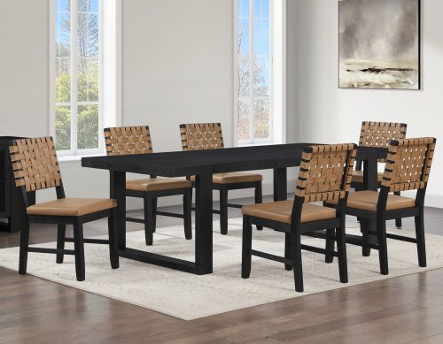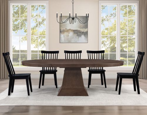 • Vaughn 5-Piece 60-96″ w/2-18 Leaves Dining Set, Coffee & Black Finish