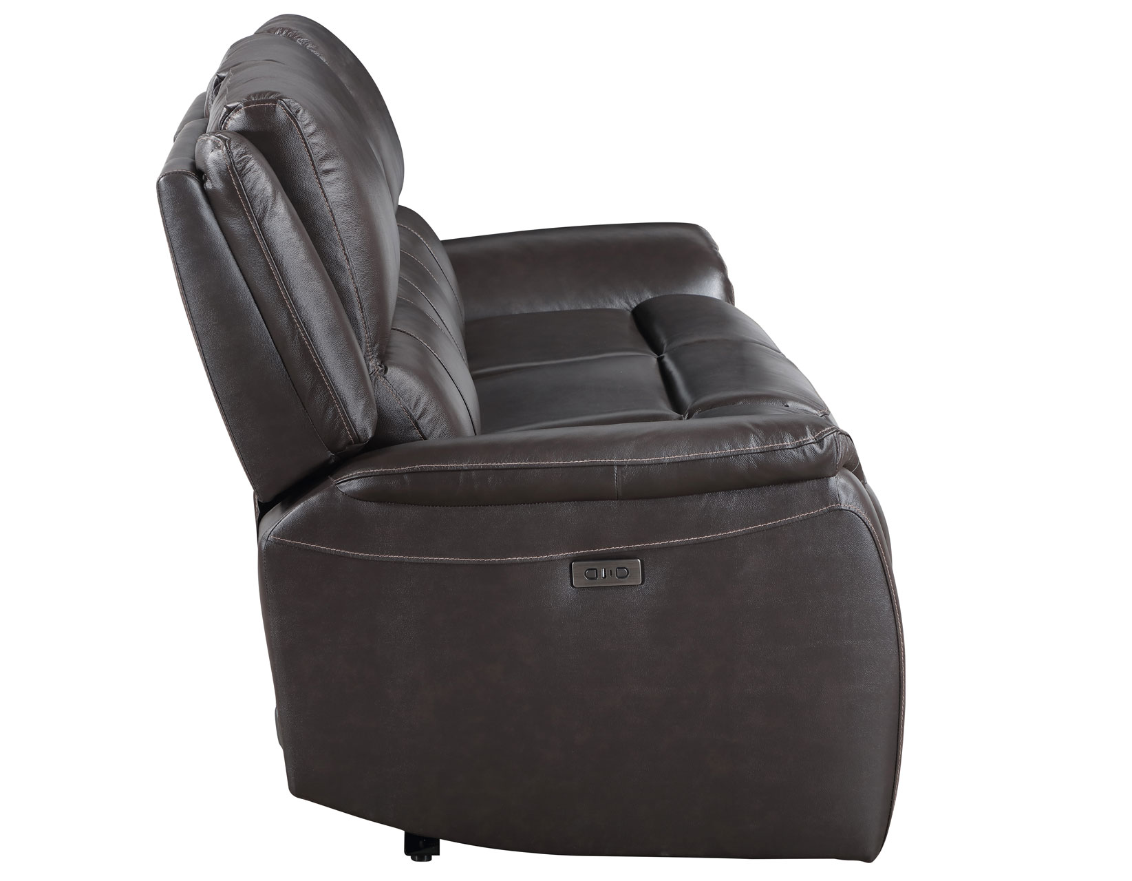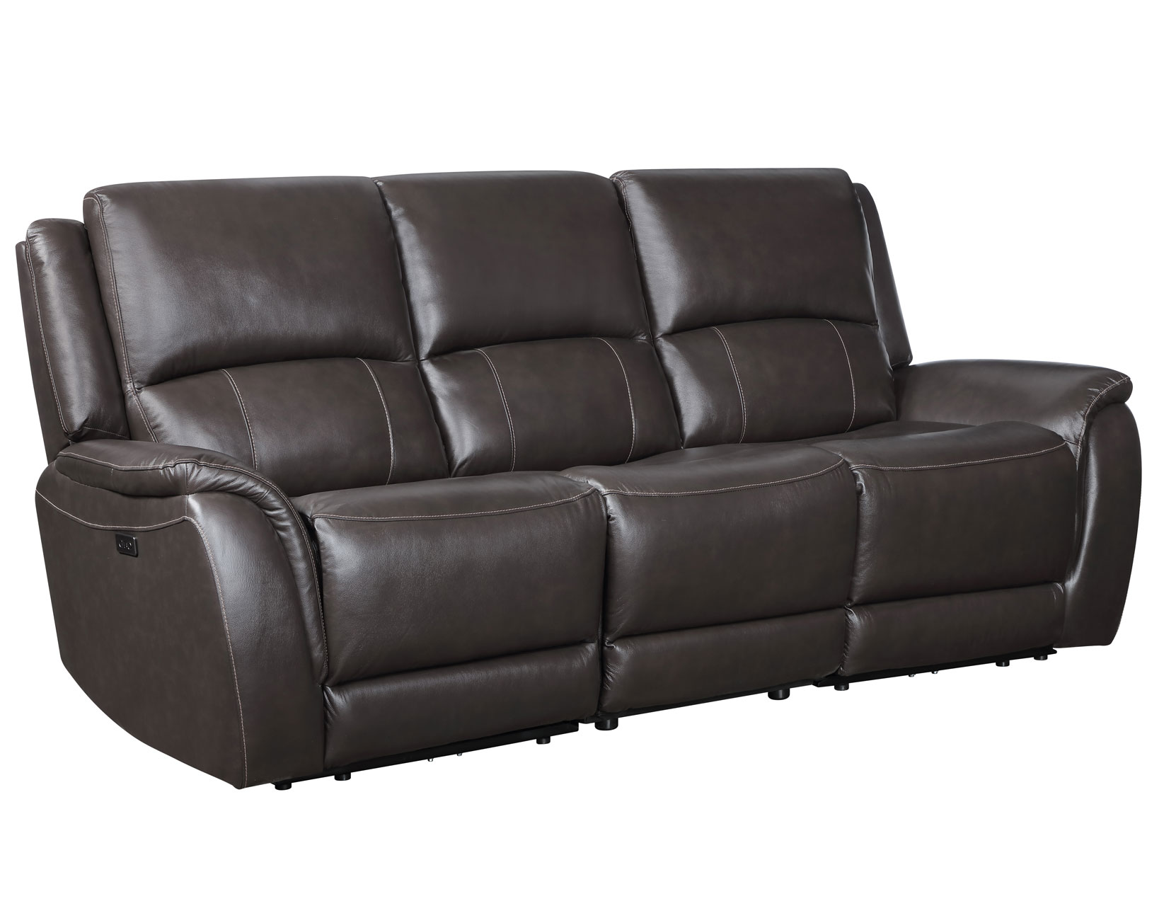 Redefine comfort with the Alexandria 3-Piece Reclining Sofa in Chocolate. Expertly upholstered in premium neutral leather, it blends seamlessly into any space with timeless appeal. Each end seat offers a smooth 143-degree power recline with just 3″ of wall clearance, ideal for modern living. Generous 7-inch cushions provide deep, supportive seating, while built-in USB ports keep your devices charged and close. Designed for style, function, and comfort, the Alexandria Sofa is your invitation to relax in effortless luxury.