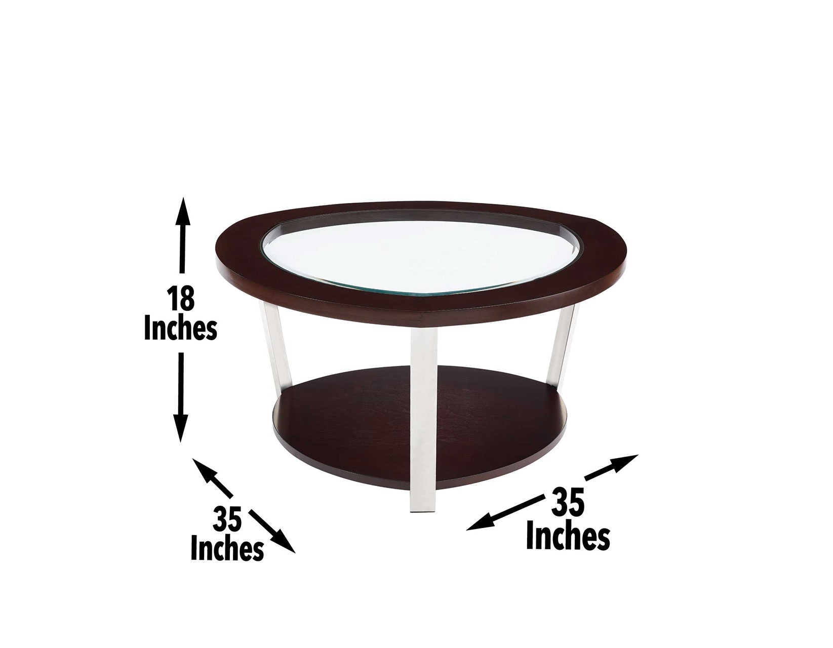 A contemporary styled occasional Cocktail Table of stainless steel, wood and glass construction, Duncan features a spherical triangular shaped top that will instantly add interest to any room. A rich mixture of elements and espresso finish combine for a sophisticated modern look.