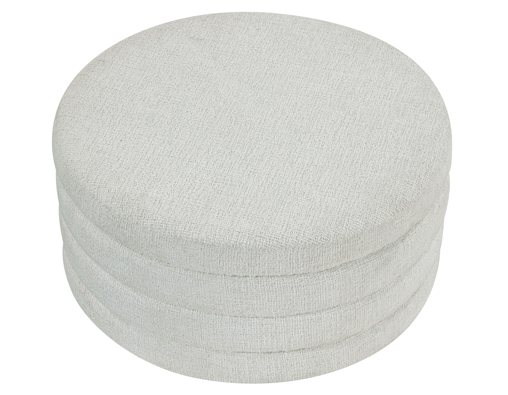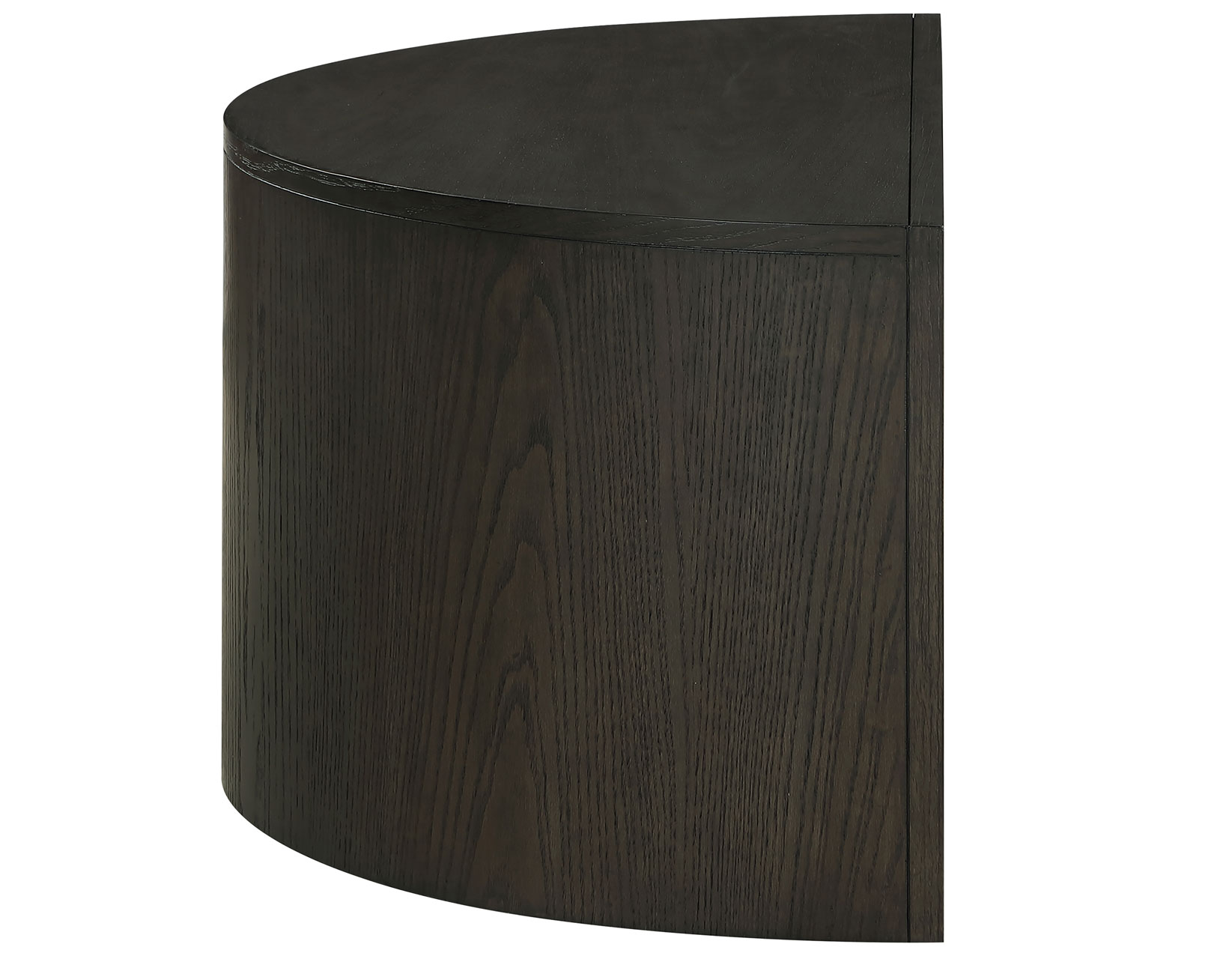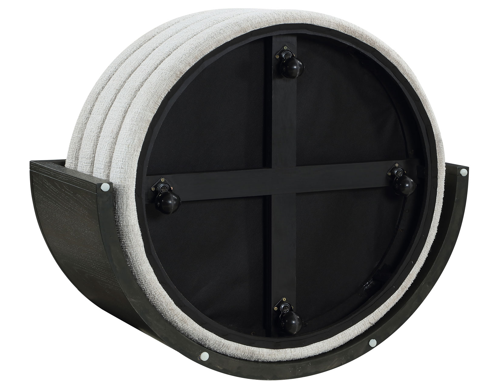 The Florence Cocktail Table with Nesting, Castered Ottoman blends smart design with effortless style. Finished in a rich black over oak veneers, the table adds depth and sophistication to any living space. The upholstered ottoman, in soft eggshell fabric with channeled sides, glides smoothly on casters and nests neatly beneath the table when not in use. Perfect for relaxing, entertaining, or offering extra seating, the Florence set delivers timeless appeal and versatile function in one elegant design.