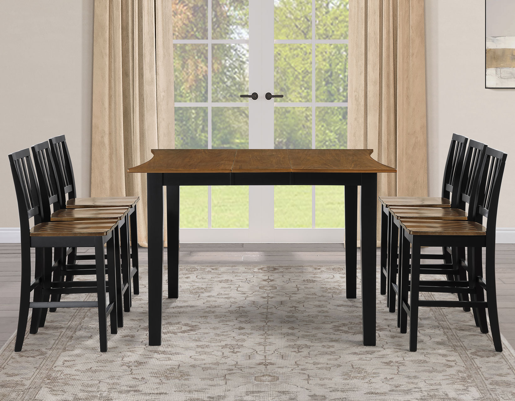 The Joplin 42–54″ Counter Table blends modern functionality with timeless design at a comfortable 36-inch height. A rich walnut veneer top pairs with ebony-finished solid wood legs for bold contrast, while concave edges at each end add visual interest. Ideal for casual dining spaces or open-concept kitchens, this transitional piece suits a variety of interiors. Need extra seating? A 12″ leaf extends the table to 62″, comfortably fitting six. Compact, stylish, and versatile, the Joplin counter table elevates everyday dining with smart, enduring design.