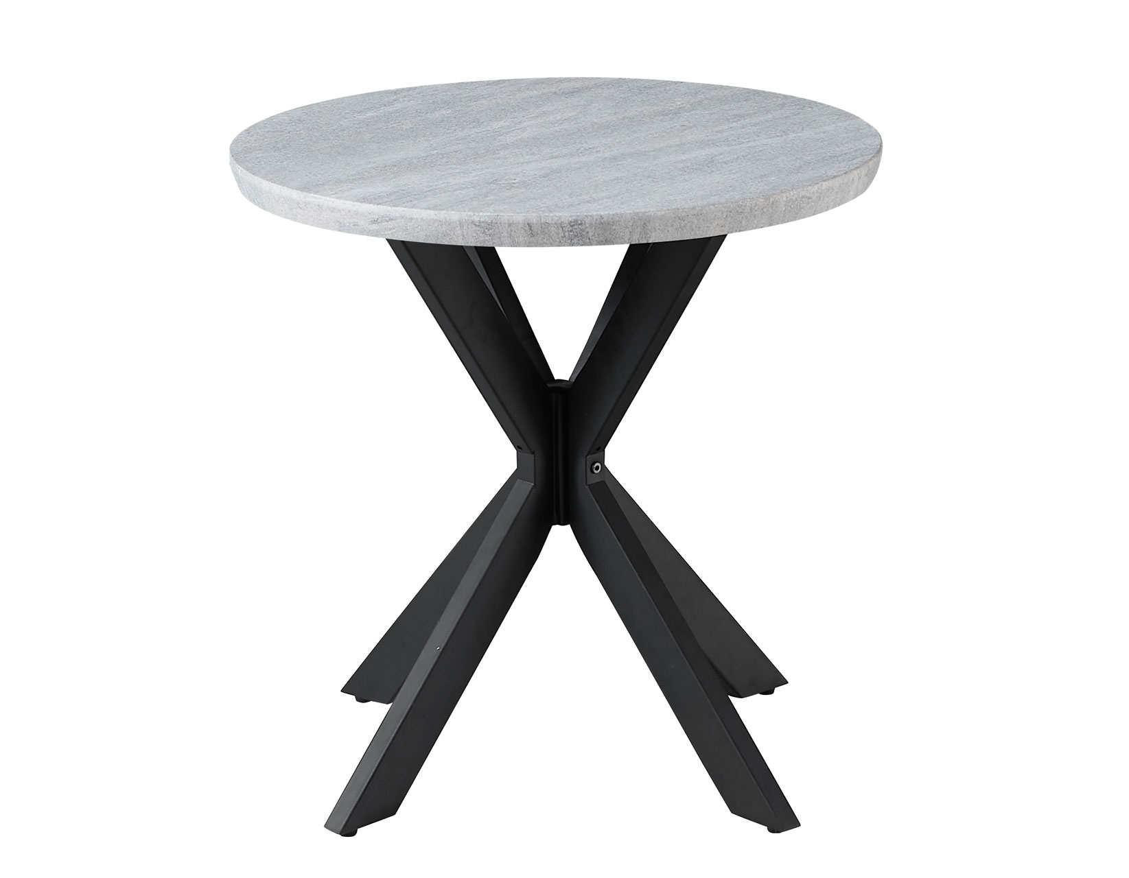 With its elegant, durable, and functional design, the Keyla Faux-Marble End Table is perfect as a stylish side table or bedside table. The flowing, round shape of this exceptional table enhances room navigation. It features a sleek black base and a gray faux-marble top with an hourglass trestle base in a mid-century modern style. Printed faux-marble paper veneer offers the luxury of real marble without the price. Powder-coated ebony iron tubing legs provide striking contrast and resistance to wear, chipping, and rust. An enduring addition to any interior, the Keyla End Table is a fusion of style, strength, and practicality.
