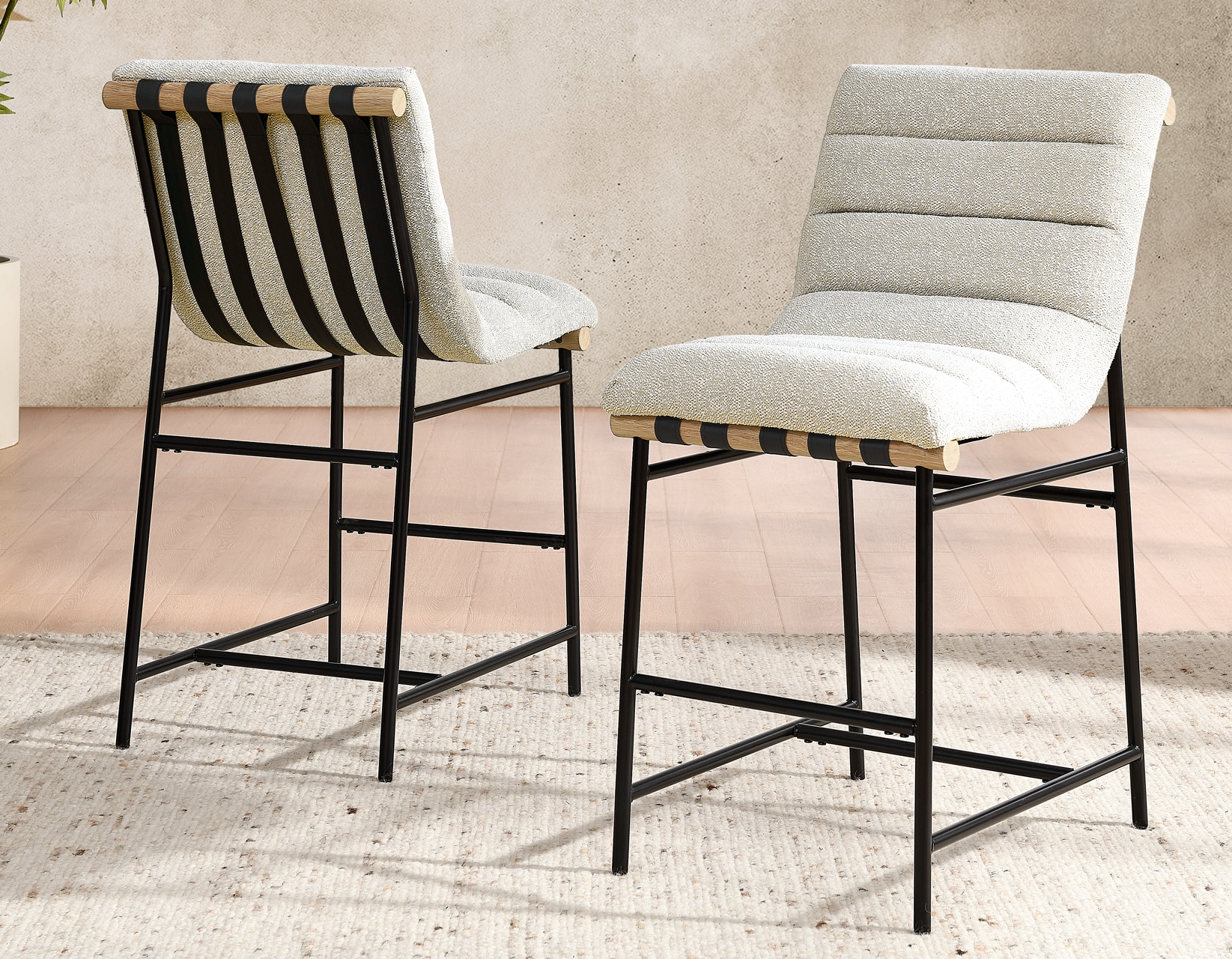Nicco Counter Chair Bucket Seat, Eggshell Polyester Fabric