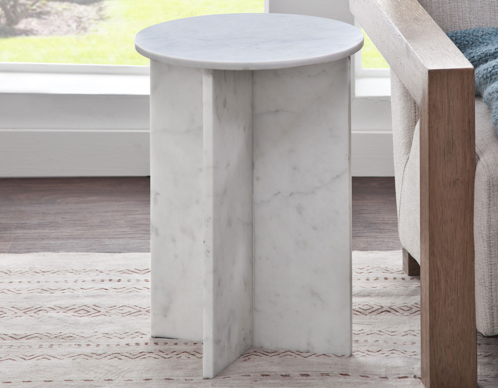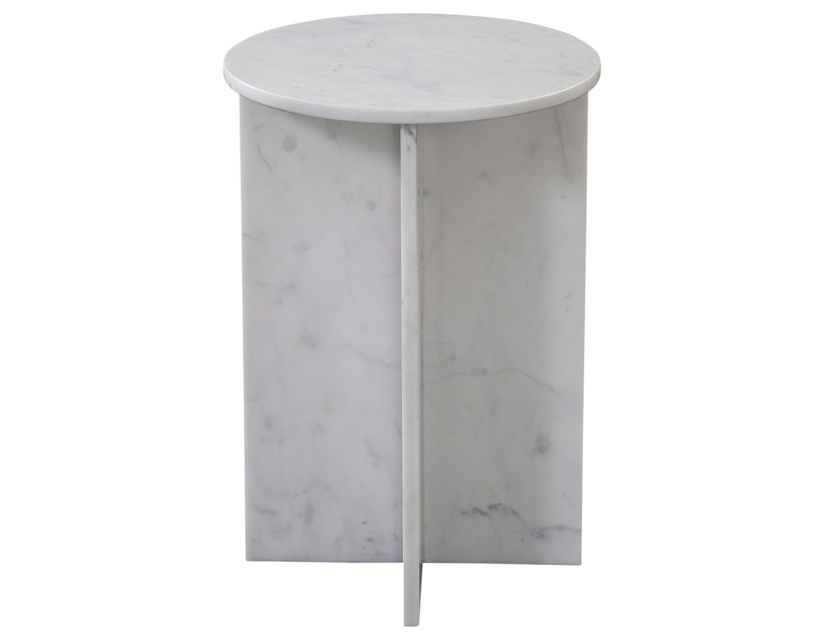 Demure yet striking, the Niki Table is sculpted from solid Banswara White marble, offering a clean, elegant look with a naturally neutral hue. Its round top and sculptural “X” base create a graceful silhouette, perfectly sized for smaller spaces while still delivering a refined design statement. The soft white surface, accented by subtle gray and violet veining, brings lightness and versatility to any room. Naturally luxurious and expertly crafted, the Niki Table is a timeless accent for modern and classic interiors alike.
