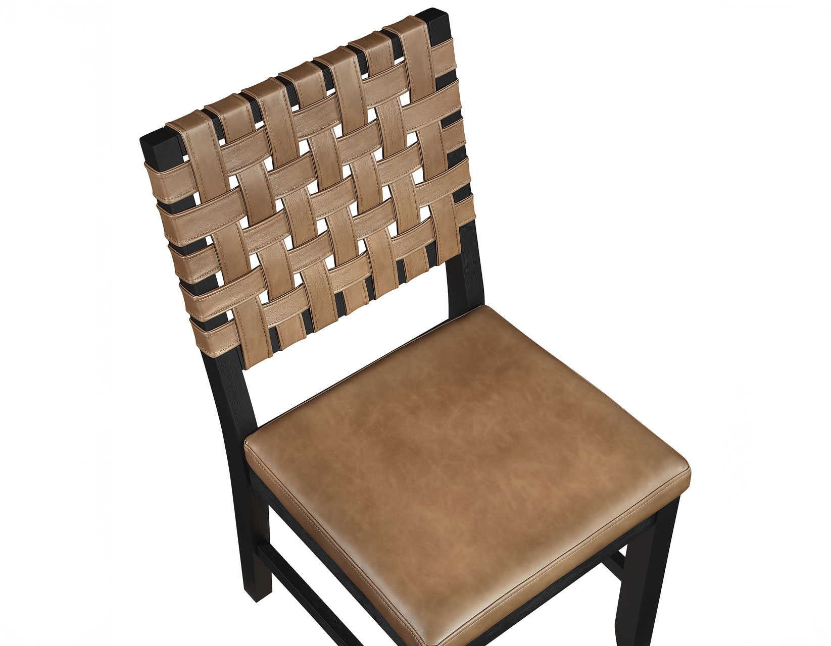 The sleek and modern Reid Black 24″ Counter Stool instantly elevates your kitchen island or bar area, proving that luxury doesn’t mean stuffy. Built for high style and comfort, it features a tailored, box-pleat seat with two inches of foam cushioning. Wrapped in rich, saddle brown vegan leather that cleans effortlessly with a damp cloth, the stool’s black finish on the frame adds a bold, contemporary contrast. An exposed webbed back provides a casual-rustic detail and superior support. The angled back completes the look, providing an ideal seating pitch for comfortable counter dining or socializing.