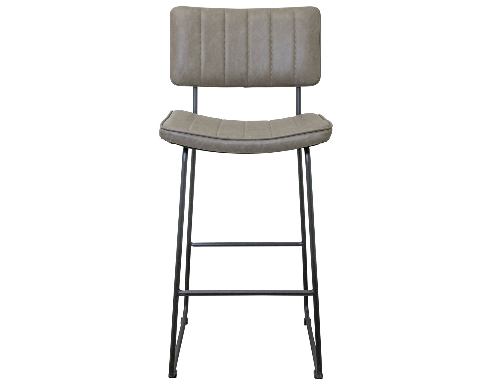 Mid-Century Modern style meets durability in the Tribeca 30″ Bar Stool, a mixed-media design perfect for bar-height spaces. A gently shaped, channeled seat and back deliver retro-inspired appeal and lasting comfort. Upholstered in soft gray faux-suede and supported by a cold-rolled steel frame, Tribeca is built for residential or commercial use. A sturdy metal base with integrated footrest provides stability and a convenient resting place. Sized for 42″ counters, Tribeca combines strength, comfort, and timeless sophistication in one versatile stool.