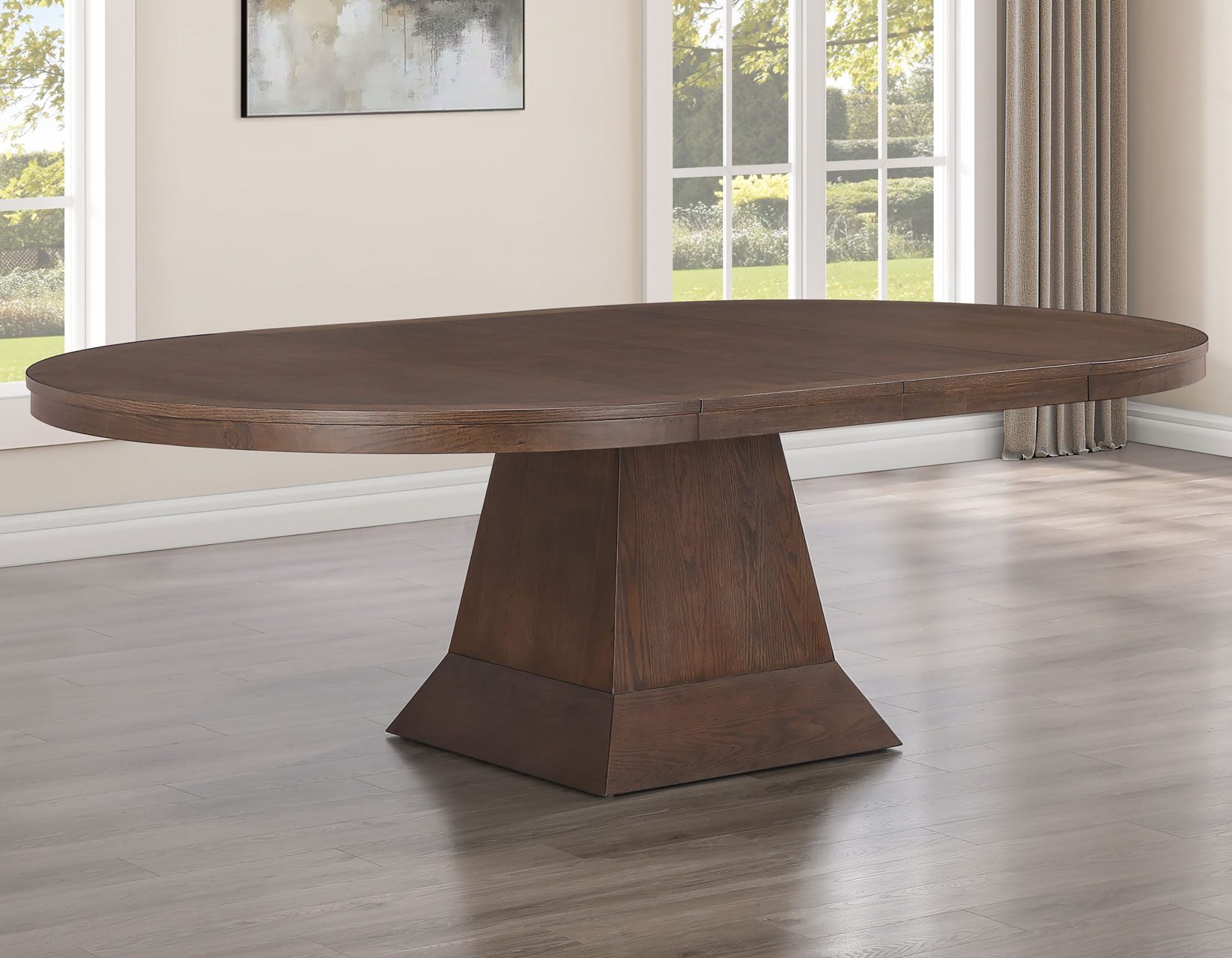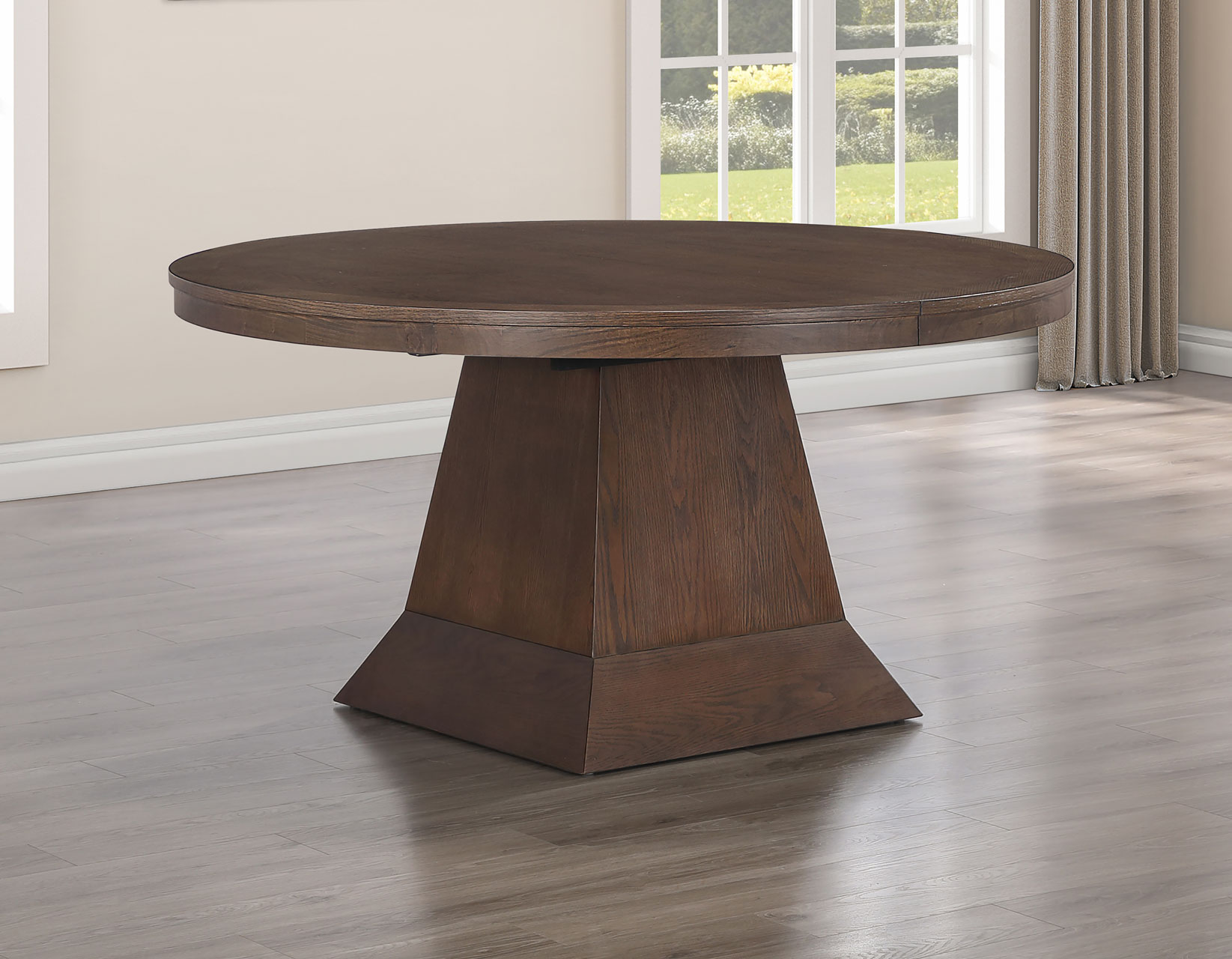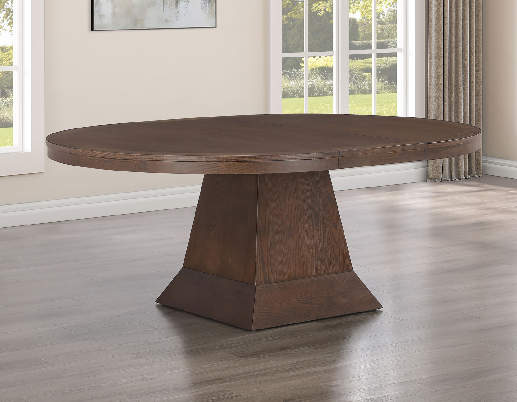 - The 60-inch round table comes with two 18-inch leaves, extending the table to 78-inches to seat eight or 96-inches to seat up to 10 people with an oval shape.