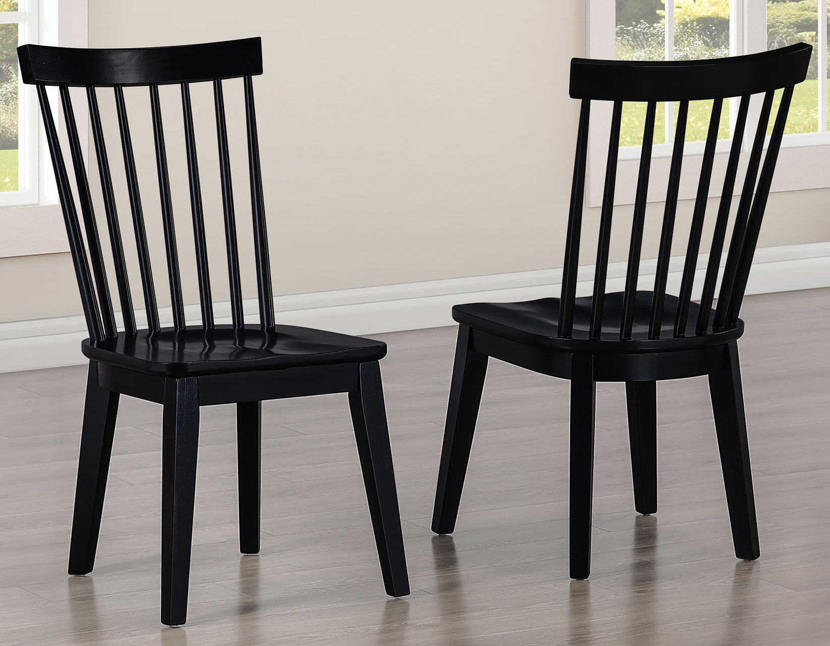 - 5-Piece Set includes the Vaughn Coffee finished Dining Table and 4 Vaughn Black Modern Windsor Chairs. Each item also sold separately.